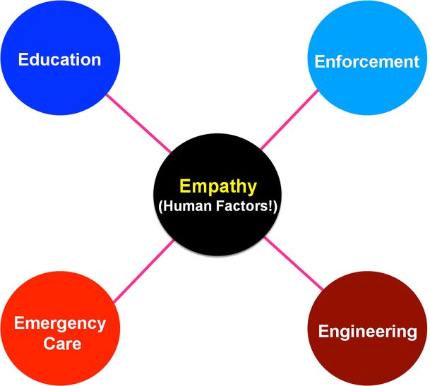 Schematic of the 5E model of the initiatives on road safety. Besides engineering, education, enforcement, and emergency care, it is important to acknowledge the key element of human in the loop which addressed by the 5th E, Ergonomics.